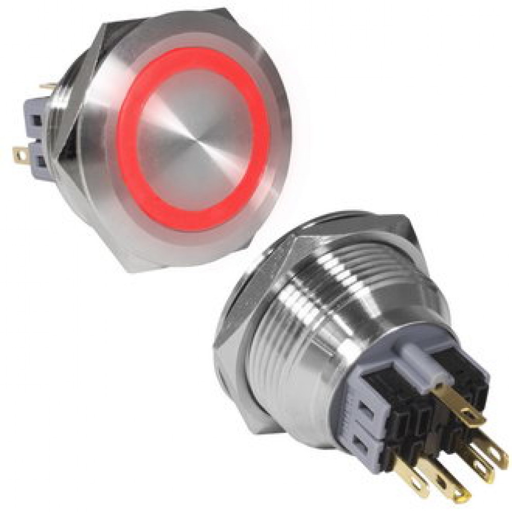 GQ30-11E/R/N ON-(OFF)+OFF-(ON), Антивандальная кнопка металлическая без фиксации с подсветкой, посадочная резьба М30, контакты под пайку