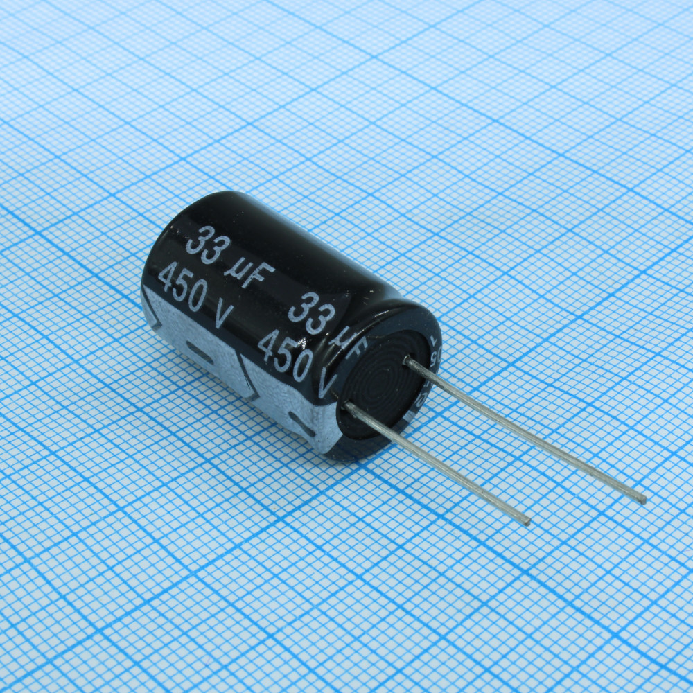 Конденсатор алюминиевый электролитический 33мкФ 450В ±20% (16х25мм) радиальный 7.5мм 2000часов 105°C россыпь