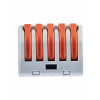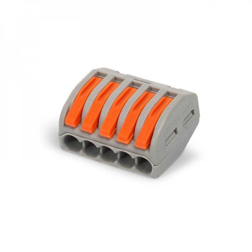 Рычажная клемма, соединительная, универсальная, 5 полюсов, сечение проводника 0,08 - 4,0 мм кв., 250V, 32A,цвет корпуса: серый, цвет рычагов: оранжевый,в упаковке 50 штук (Аналог 222-415)