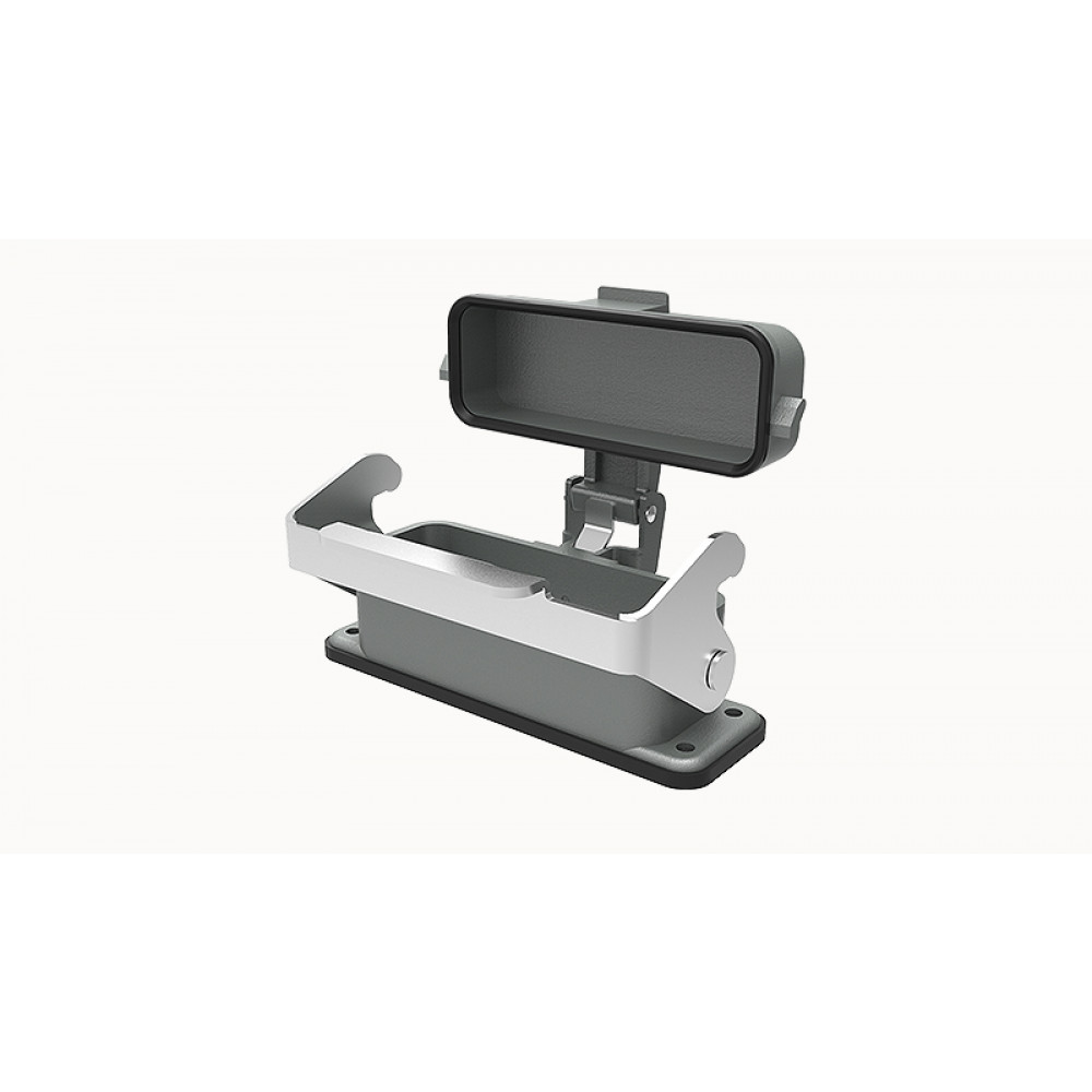Открытое основание разъема D16A-BK-1L-CV, Основание разъема на панель, открытое, типоразмер 16A, без уплотнителя, с одной защелкой, с защитной крышкой, материал корпуса: алюминиевый сплав