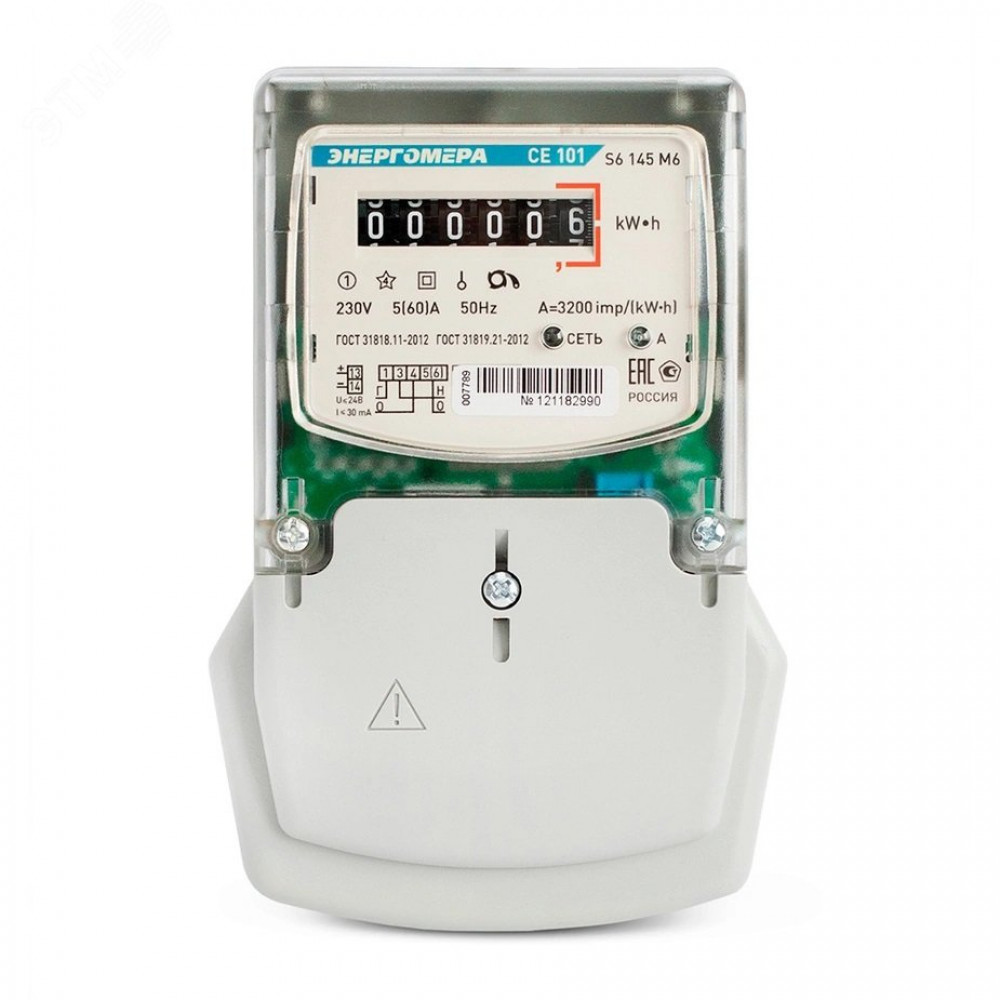 Счетчик CE101 S6 145 M6 1ф 5-60А класс точн. 1.0 1 тариф. на панель мех. ОУ 101001003007789, Счетчик однофазный