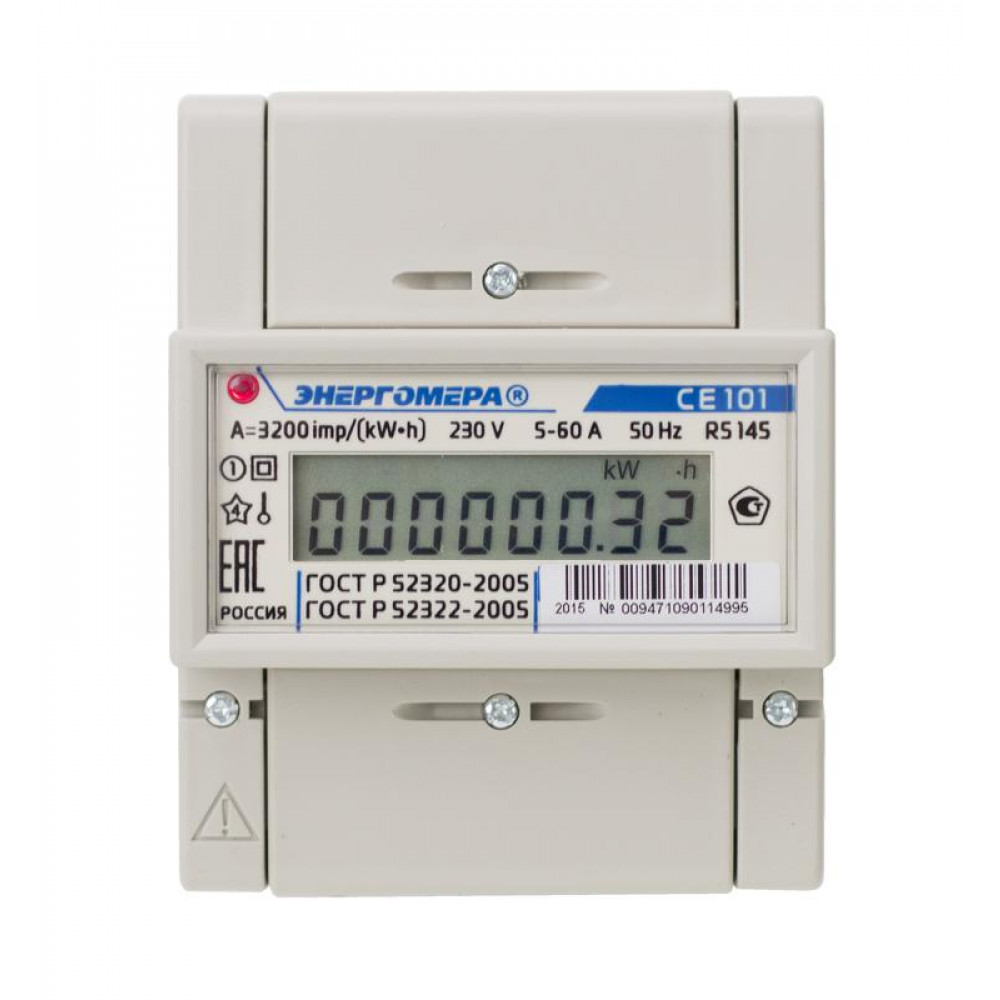 Счетчик CE101 R5 145 1ф 5-60А класс точн. 1.0 1 тариф. 101001003009471, Счетчик однофазный
