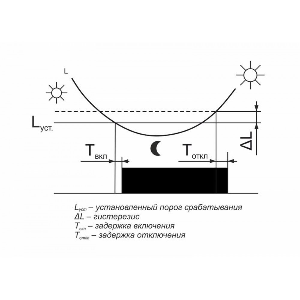 Принцип работы основан на контроле уровня освещенности встроенным фотодатчиком. Автомат оснащен схемой помехозащиты от ложных срабатываний.