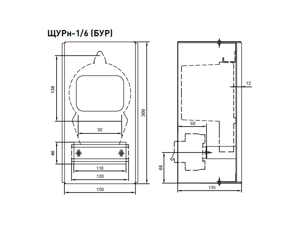 Описание Щит ЩУРн 1/6 (БУР) (300х150х135) IP31 mb23-1/6