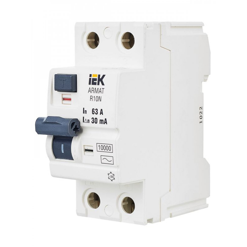Описание Выключатель дифференциального тока (УЗО) 2п 63А 30мА тип AC ВДТ R10N ARMAT AR-R10N-2-063C030