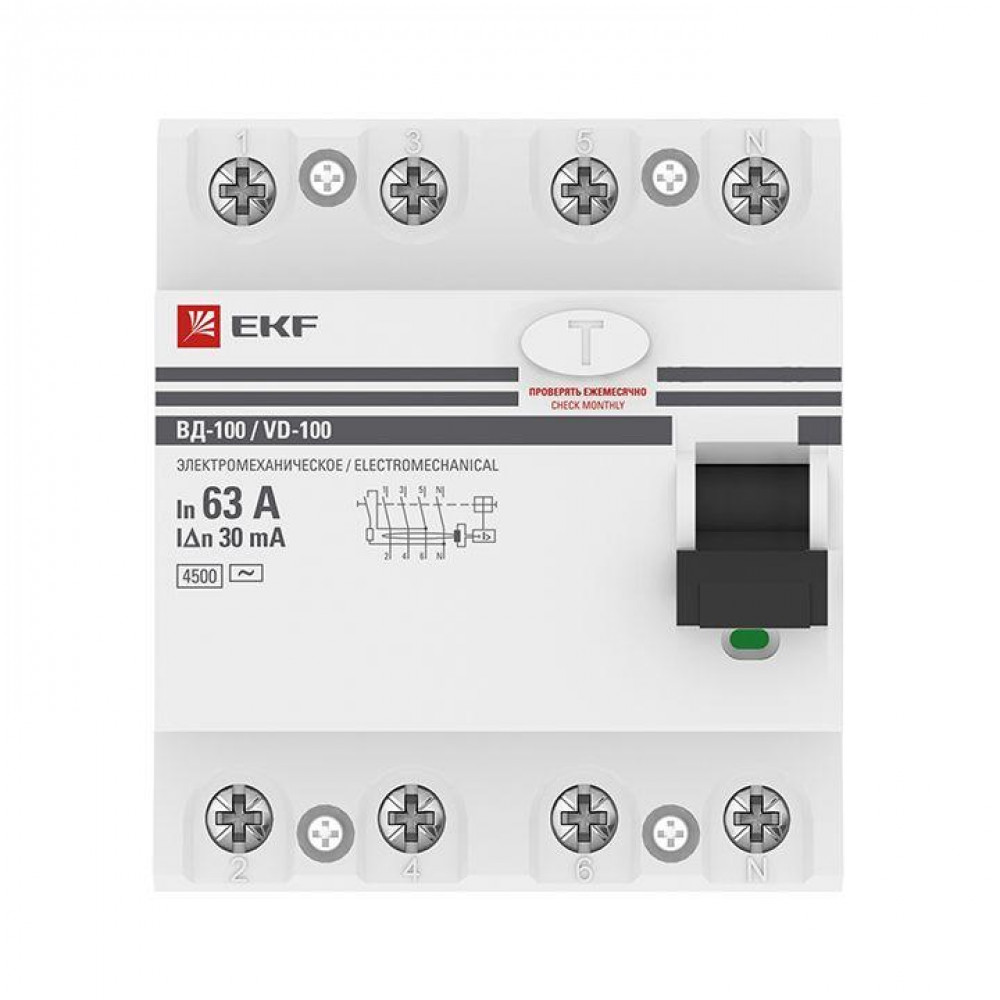 Выключатель дифференциального тока (УЗО) 4п 63А 30мА тип AC ВД-100 (электромех.) PROxima elcb-4-63-30-em-pro, Дифференциальная защита: УЗО, дифф блок