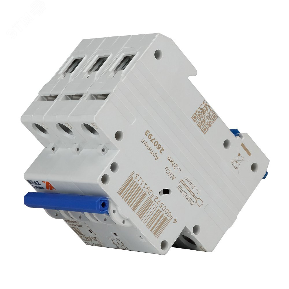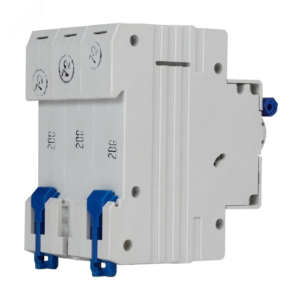 Модульный автоматический 3 полюсный выключатель переменного тока с предельной коммутационной способностью при переменном токе 6 кА на номинальный ток 20 А .