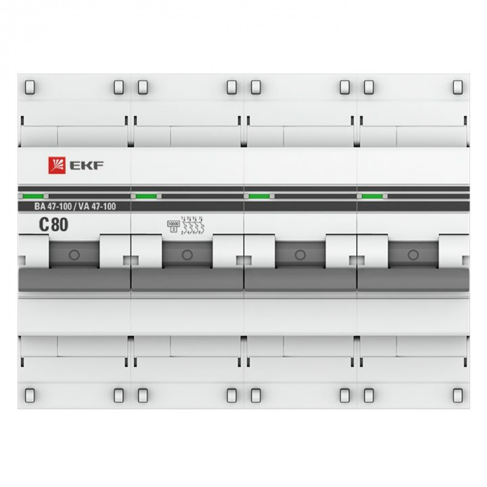 Описание Выключатель автоматический модульный 4п C 80А 10кА ВА 47-100 PROxima EKF mcb47100-4-80C-pro