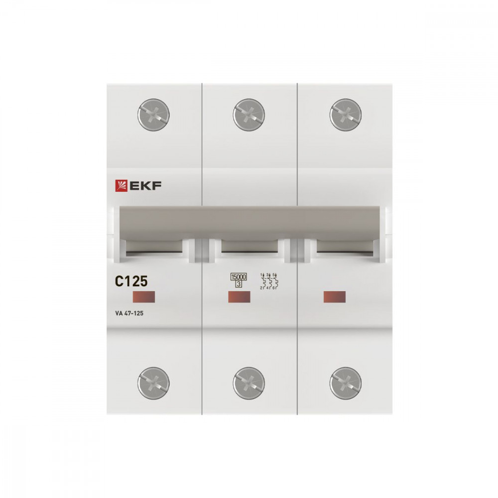 Выключатель автоматический модульный 3п C 125А 15кА ВА 47-125 PROxima EKF mcb47125-3-125C, Выключатель автоматический модульный