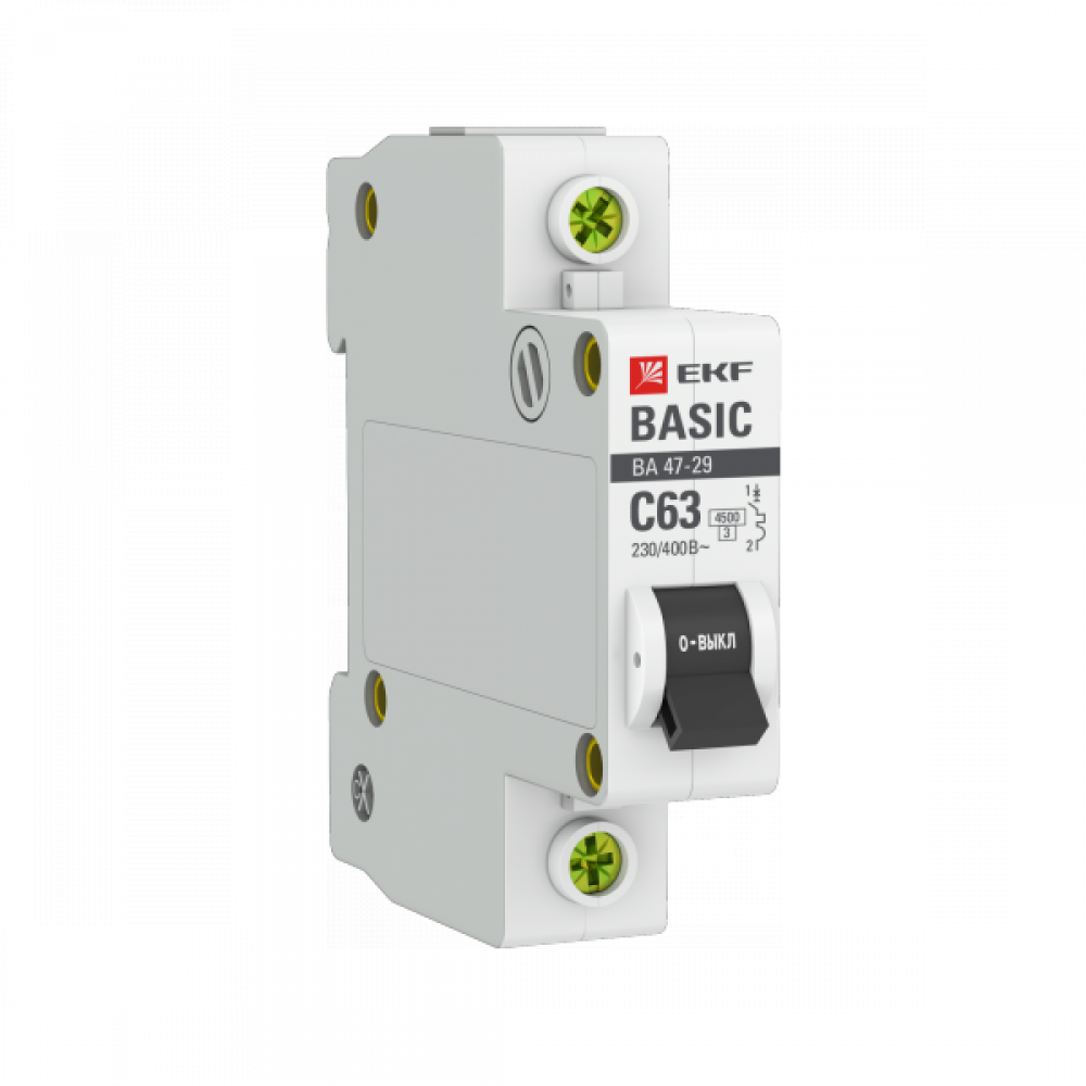 Выключатель автоматический модульный 1п C 63А 4.5кА ВА 47-29 Basic EKF mcb4729-1-63C, Выключатель автоматический модульный