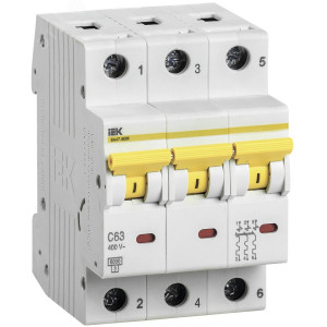 Описание Выключатель автоматический модульный 3п C 63А 6кА ВА47-60M KARAT IEK MVA31-3-063-C