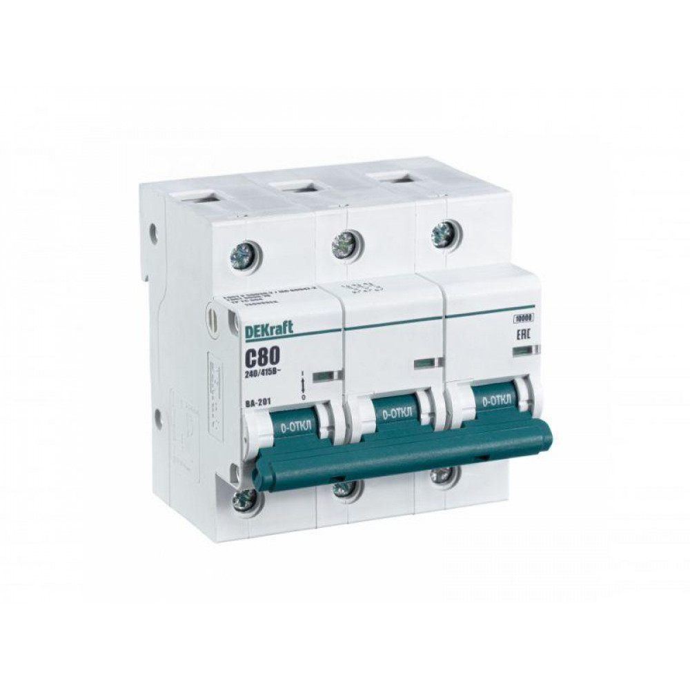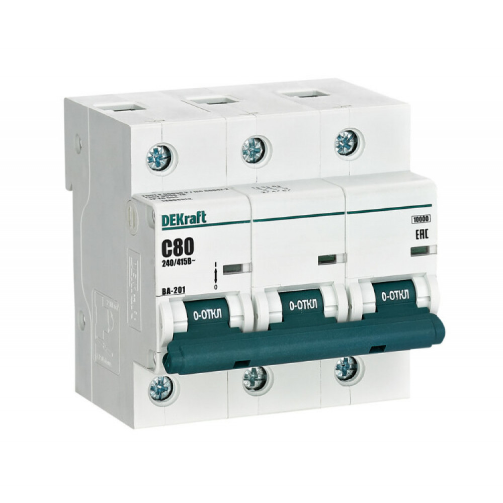 Описание Выключатель автоматический модульный 3п C 80А 10кА ВА-201 DEKraft 13008DEK