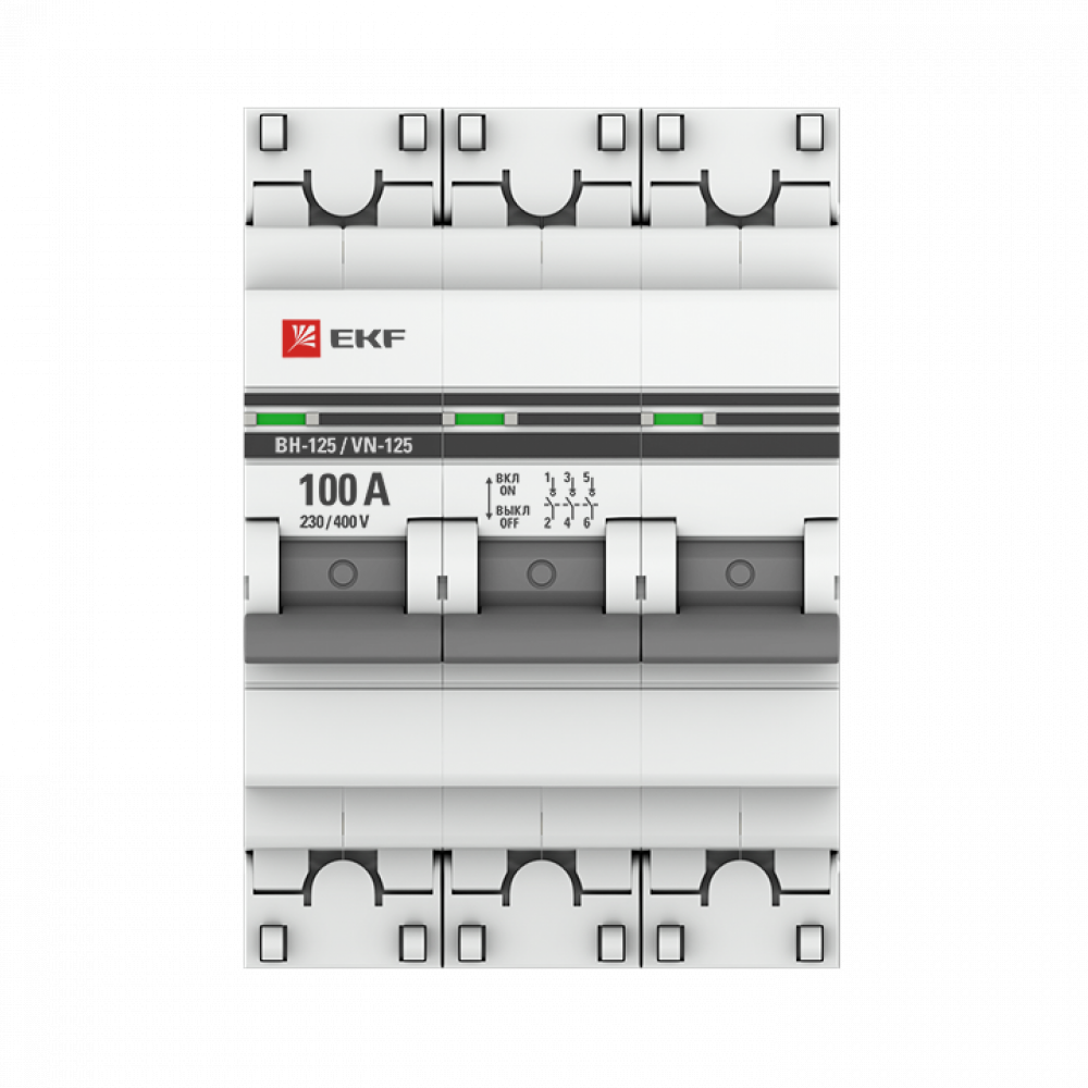 Описание Выключатель нагрузки 3п 100А ВН-125 PROxima SL125-3-100-pro