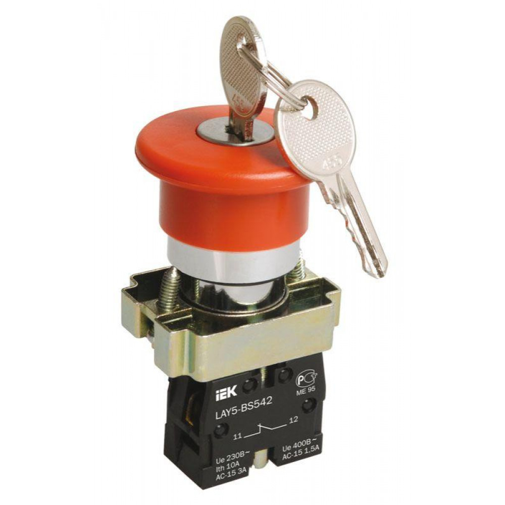 Кнопка управления "Грибок" LAY5-BS142 d22мм 1р 240В с ключом красн. BBG50-LAY5-K04, Кнопка