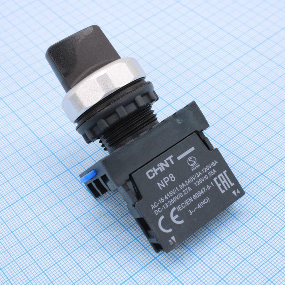 Описание Переключатель NP8-10X/212 2 положения 1НО IP65 с фиксацией без подсветки черн. CHINT 578661