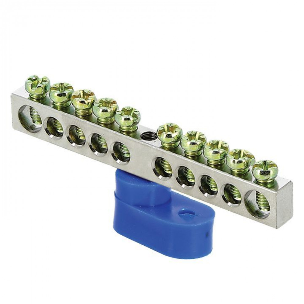 Шина нулевая N 6х9 10 отверст. цинк син. угловой изолятор PROxima sn1-63-10-1, Блок клеммный и нулевая шина