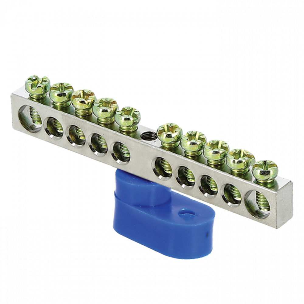 Описание Шина нулевая N 6х9 10 отверст. цинк син. угловой изолятор PROxima sn1-63-10-1