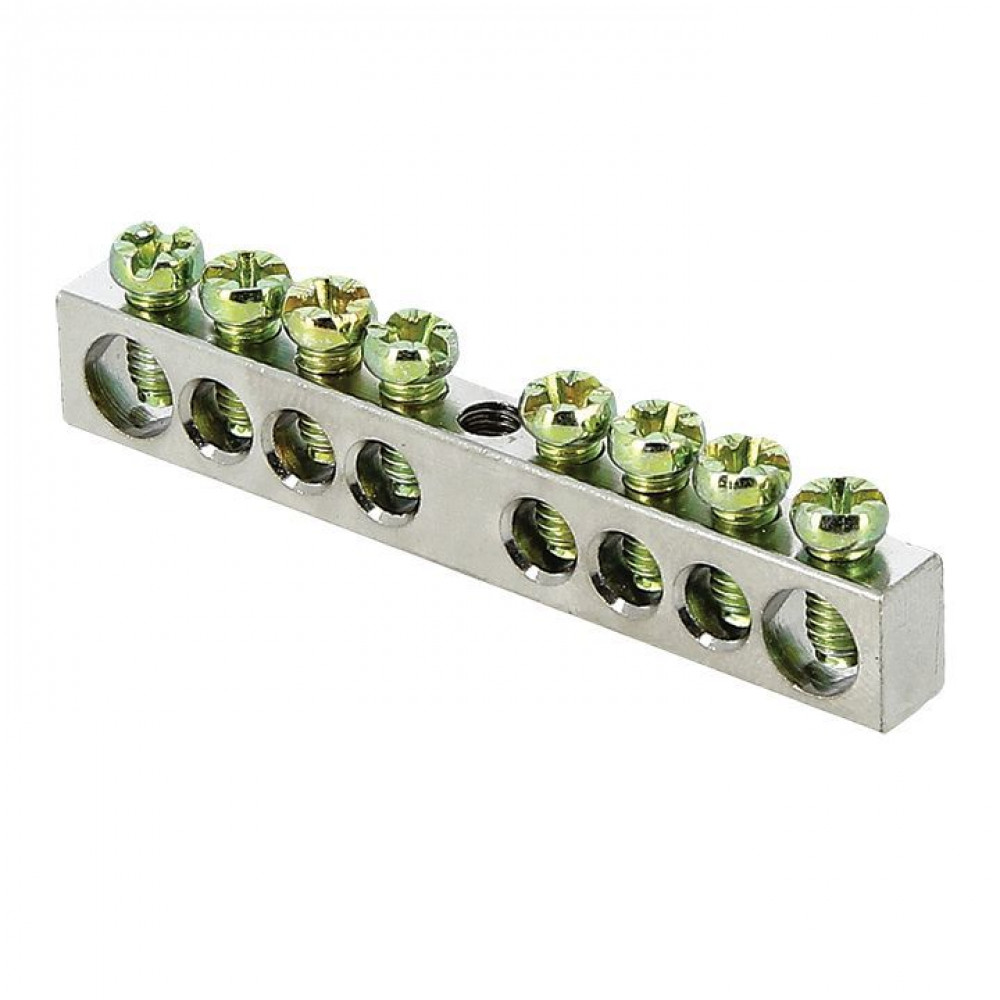 Шина PEN "ноль-земля" 6х9 8 отверст. цинк крепеж по центру PROxima sn1-63-08, Блок клеммный и нулевая шина