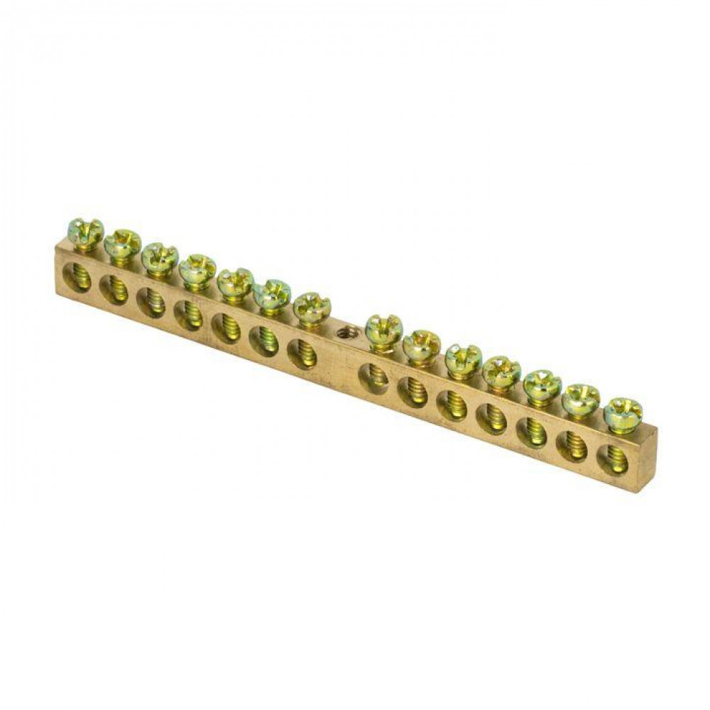 Шина PEN "ноль-земля" 6х9 14 отвер. латунь крепеж по центру PROxima sn0-63-14, Блок клеммный и нулевая шина