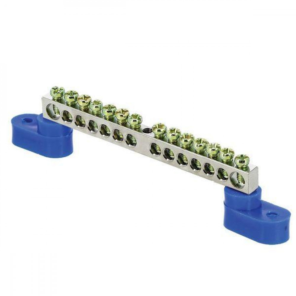 Шина нулевая N 6х9 14 отверст. цинк 2 син. угловых изолятора PROxima sn1-63-14-2, Блок клеммный и нулевая шина