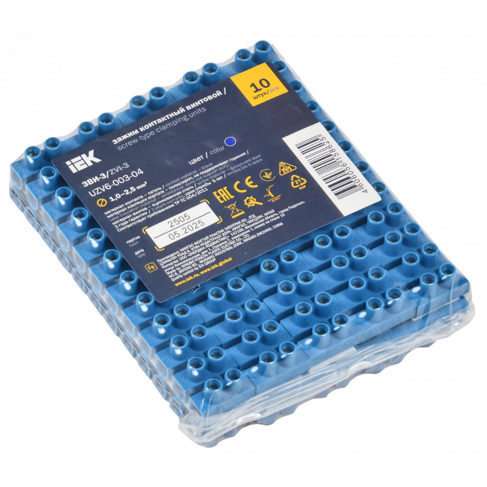 Описание Колодка клеммная ЗВИ-3 н/г 1.0-2.5кв.мм 12 пар син. UZV6-003-04