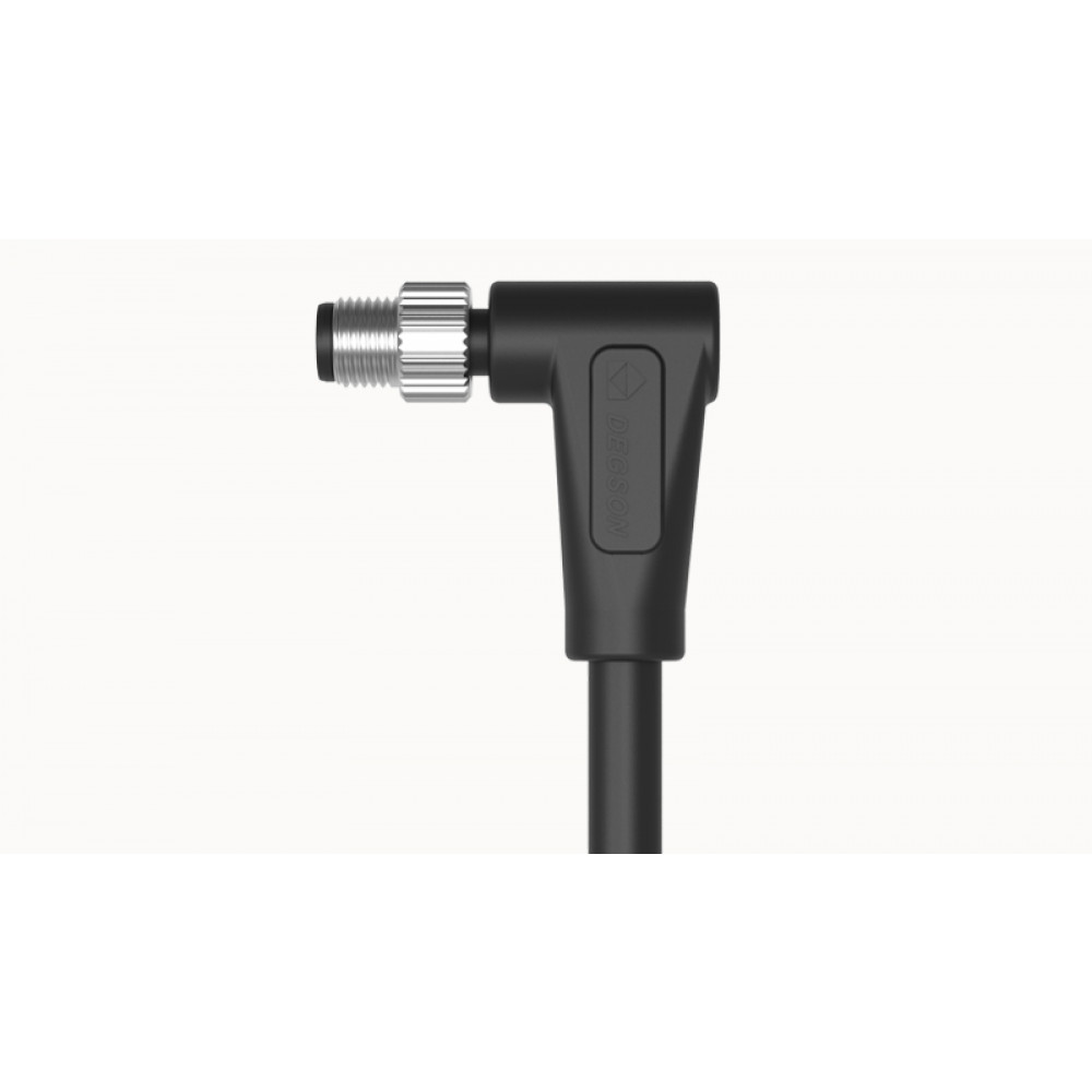 Кабельная сборка, оконеченная вилочным угловым разъемом, M5 и свободным концом, 4 полюса, A-Code, длина кабеля: 1 метр, сечение: 4 х 0,14 мм.кв., (цвет проводовников: коричневый, белый, синий, черный), 1А, 60V, цвет разъема: черный, цвет кабеля: черный