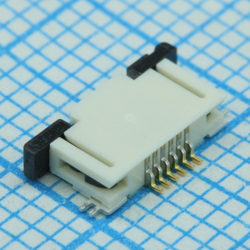 Соединитель FPC 6 контактов шаг 0.5мм угловой SMD лента на катушке