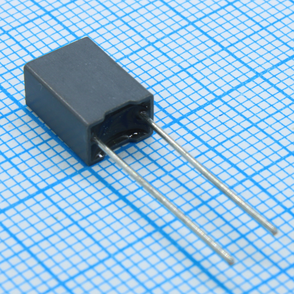Конденсатор металлоплёночный полиэтилентерефталатный 1мкФ 100В ±10% (7.2х6х11мм) шаг выводов 5мм 125°С автомобильного применения россыпь