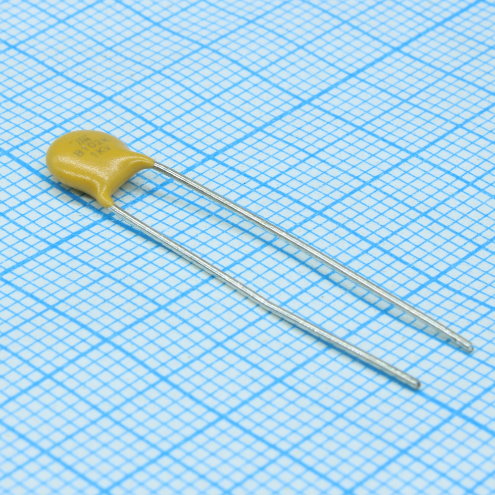 Керамический конденсатор радиальный 1000pF 1000V B 10% (6 X 4mm) прямые выводы длиной 25mm с шагом 5mm 85°C, россыпь