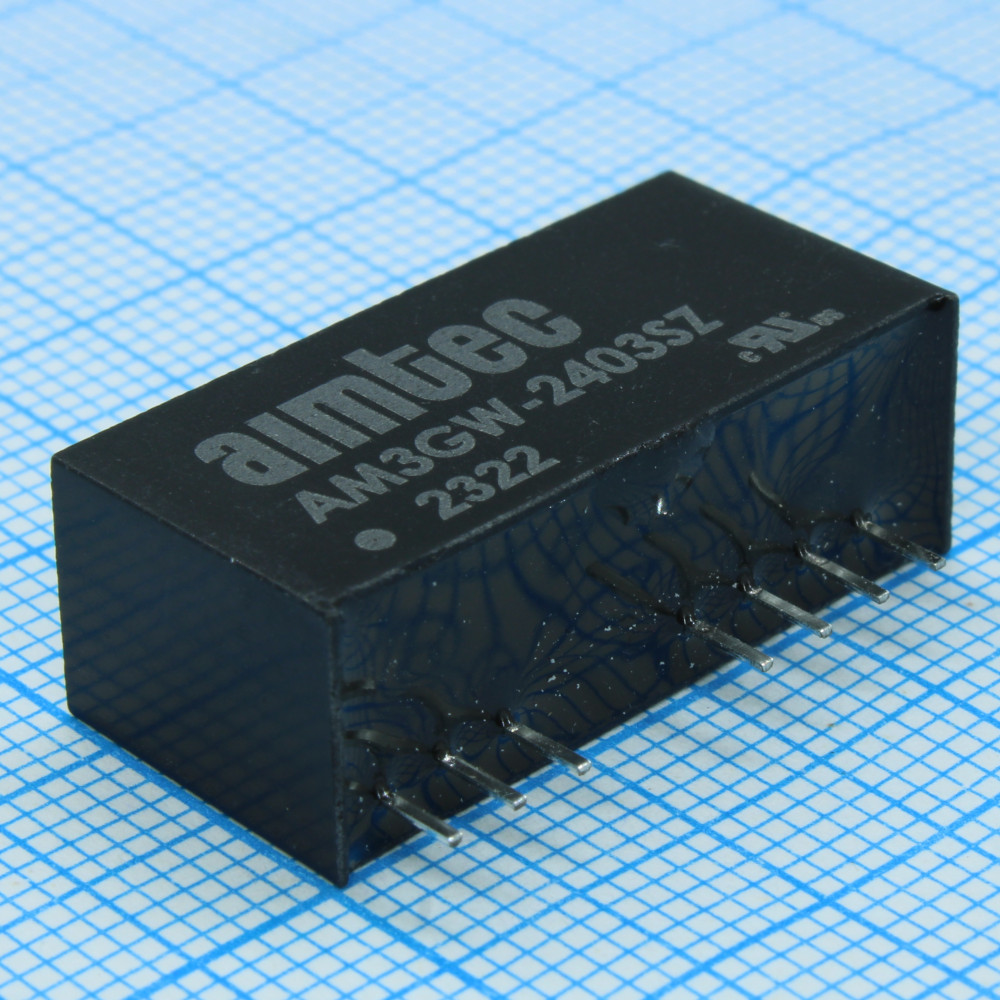AM3GW-2403SZ, DC/DC, 3Вт, вход 9…36В, выход 3.3В/0.7А, изоляция 1500В DC, КПД 77%, максимальная емкостная нагрузка не более 2200мкФ, вход On/Off, SIP9, 26x9.3x12.5мм, -40…85°C, пластик