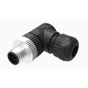 Вилочный разъем PB-M12B-05P-MM-SR7001, Вилочный разъем на кабель, 5 полюсов, M12, угловой, винтовая фиксация провода, B-Code, диаметр кабеля: 4,0-8,0 мм, сечение: 0,25 - 0,52 мм кв., 4А, 60V, корпус из пластика, резьбовой фиксатор раъемного соединения металл