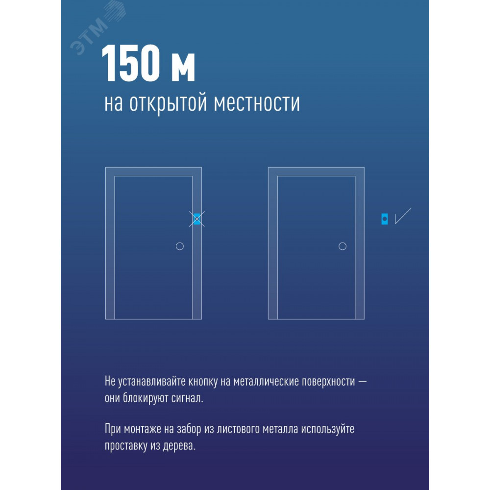 Беспроводной радио-звонок. 32 мелодии на выбор, включая стандартный вызов. Мгновенная установка без инструментов. Применяется как в городских квартирах, так и в загородных домах, где кнопка вызова может размещаться прямо у калитки. Кнопка защищена от дождя. Дистанция 150 метров при прямой видимости.