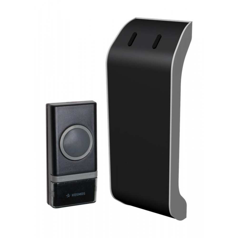 Звонок беспроводной полиф. 23 мелодии 150м 1 кноп. IP44 2хAA (не в компл.) черн. КОСМОС KOC_AG510B, Звонок электроустановочный