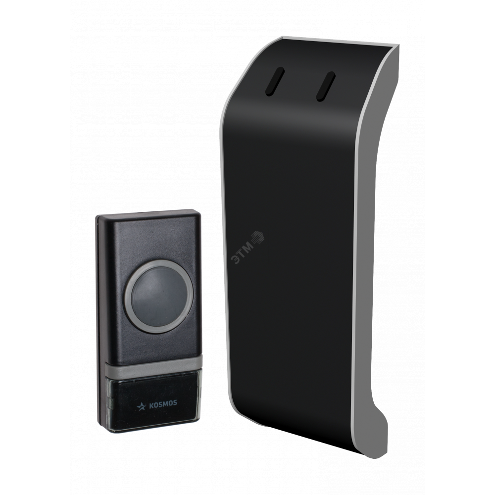 Описание Звонок беспроводной полиф. 23 мелодии 150м 1 кноп. IP44 2хAA (не в компл.) черн. КОСМОС KOC_AG510B