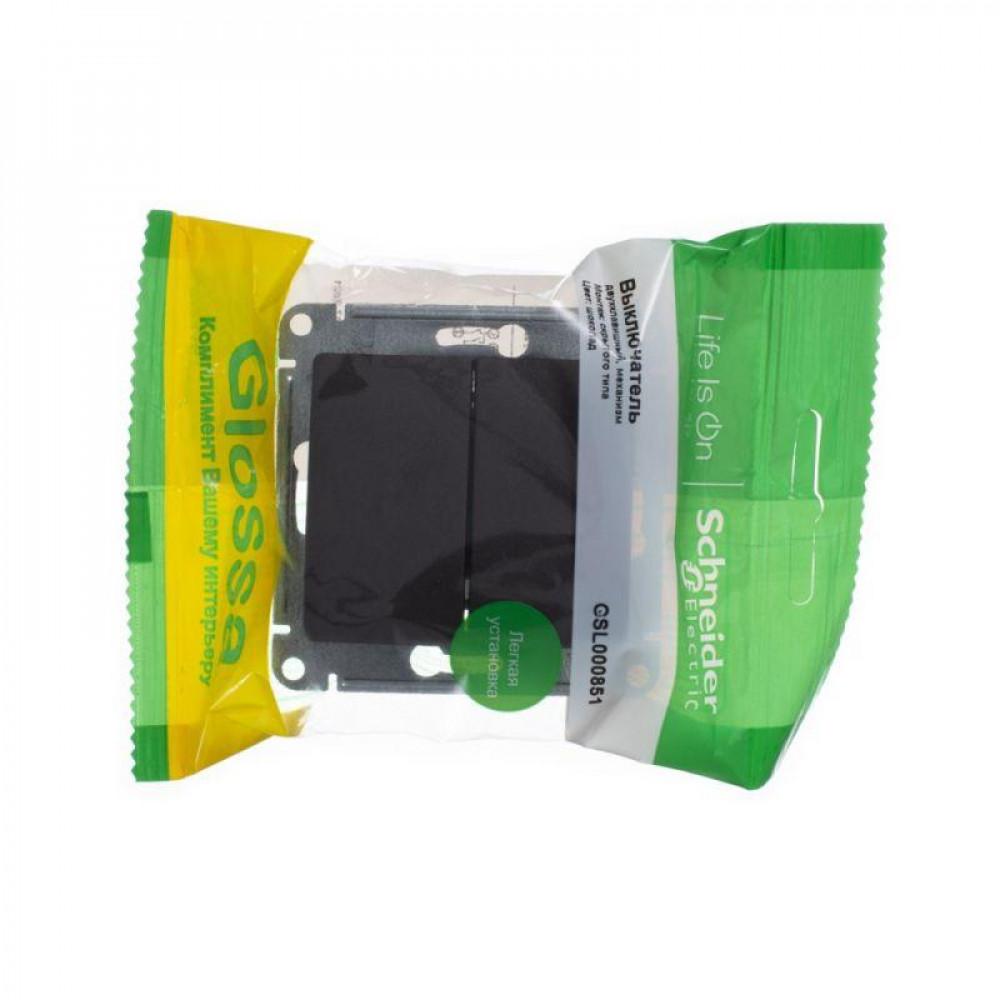Механизм Glossa (цвет шоколад) выключателя 2-клавишного подходит для сетей 250 В, на ток 10 А.
