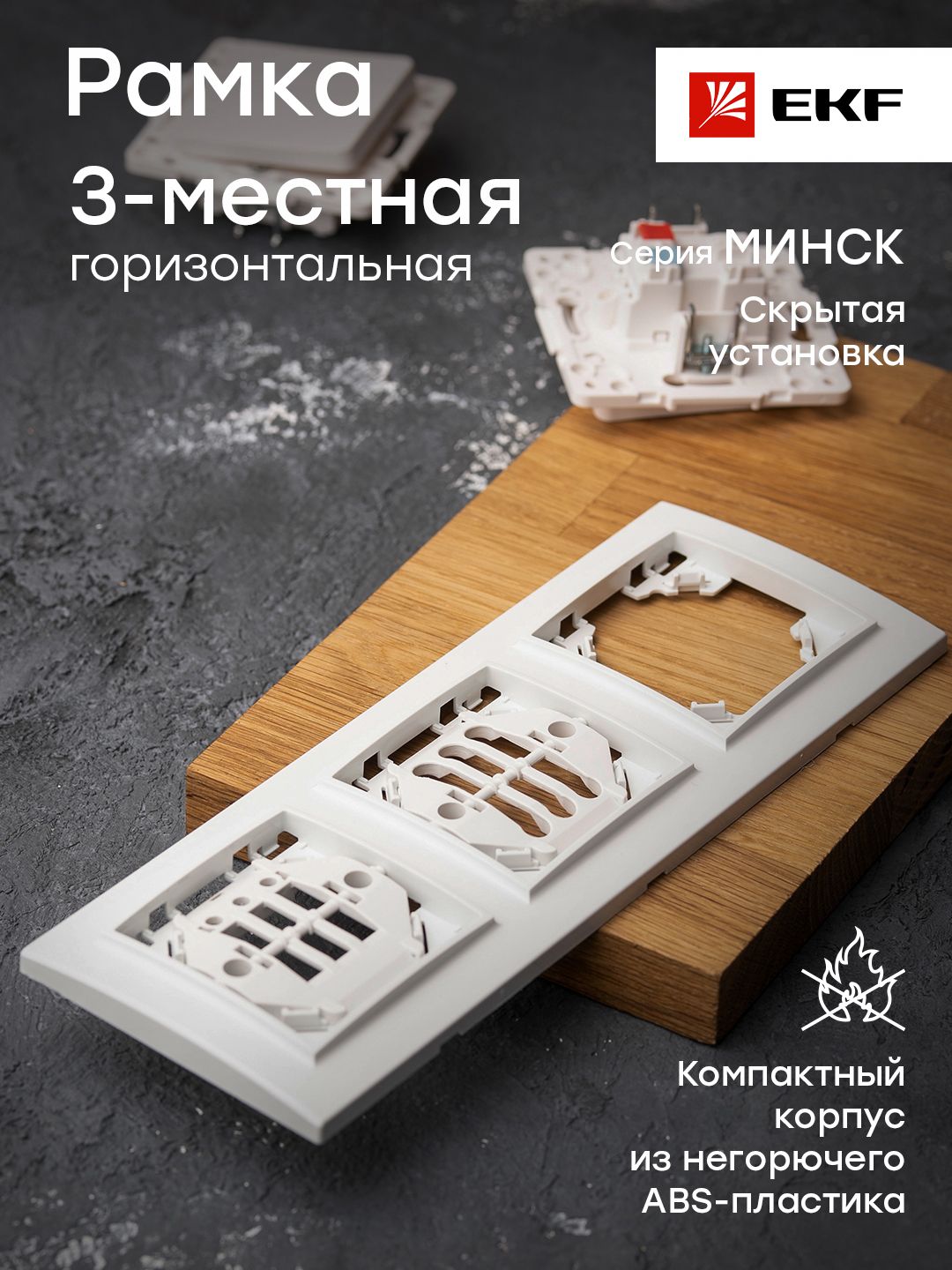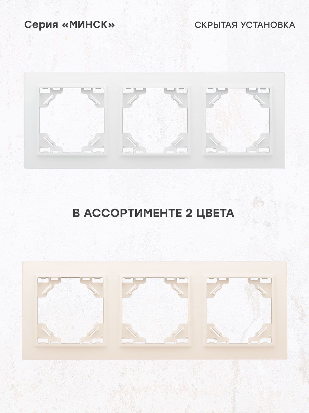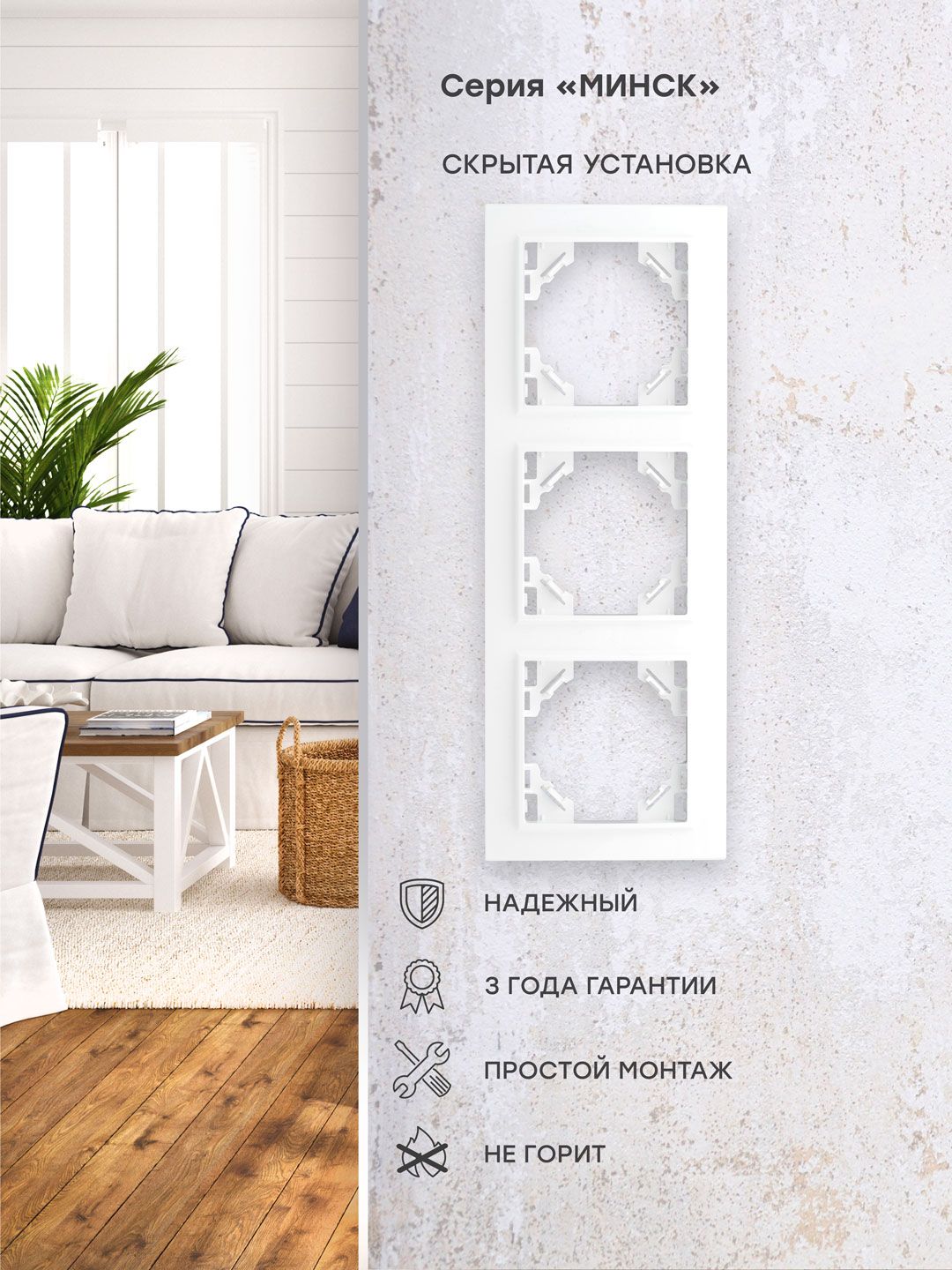 Рамка 3-м Минск горизонтальная бел. Basic ERM-G-303-10, Аксессуар для скрытого монтажа