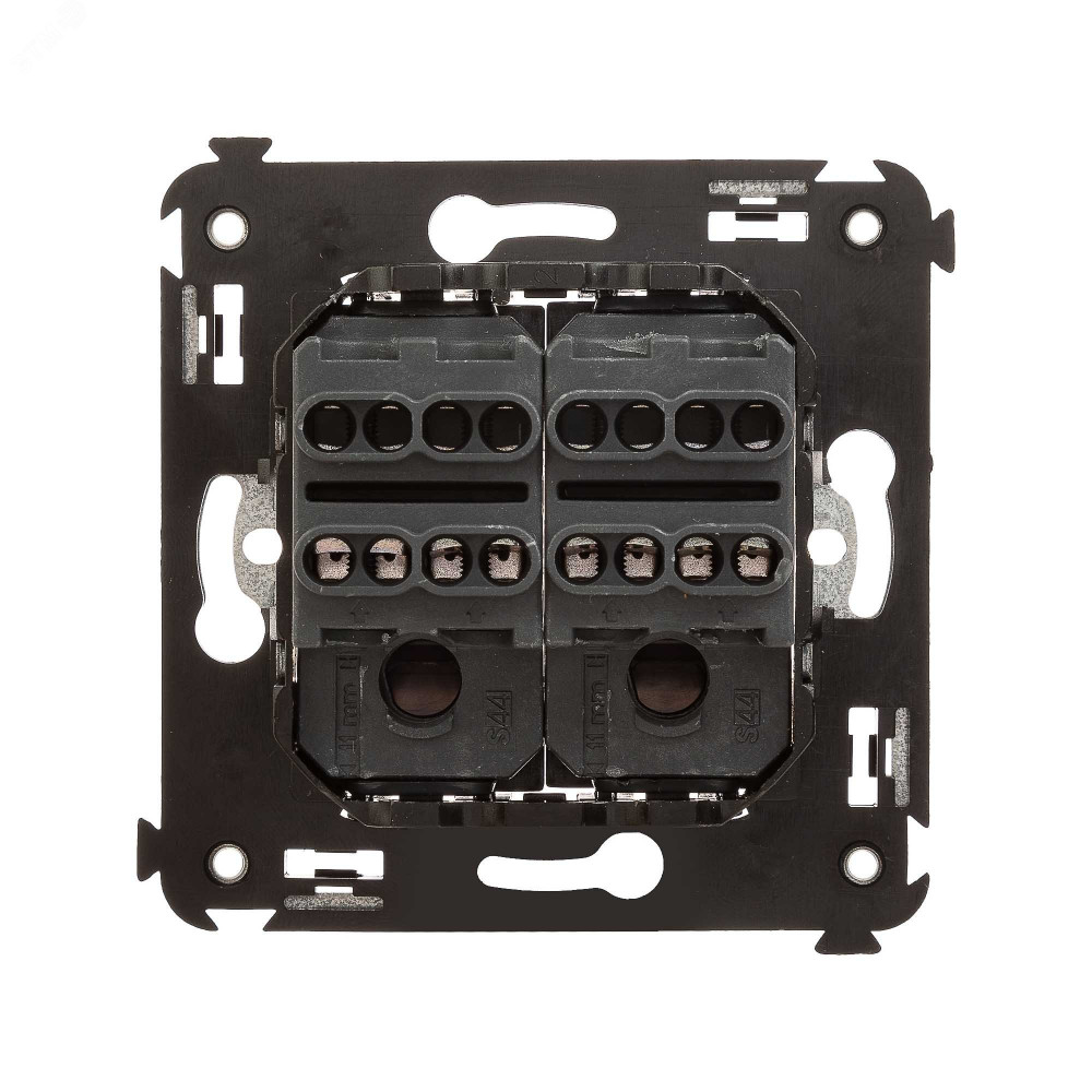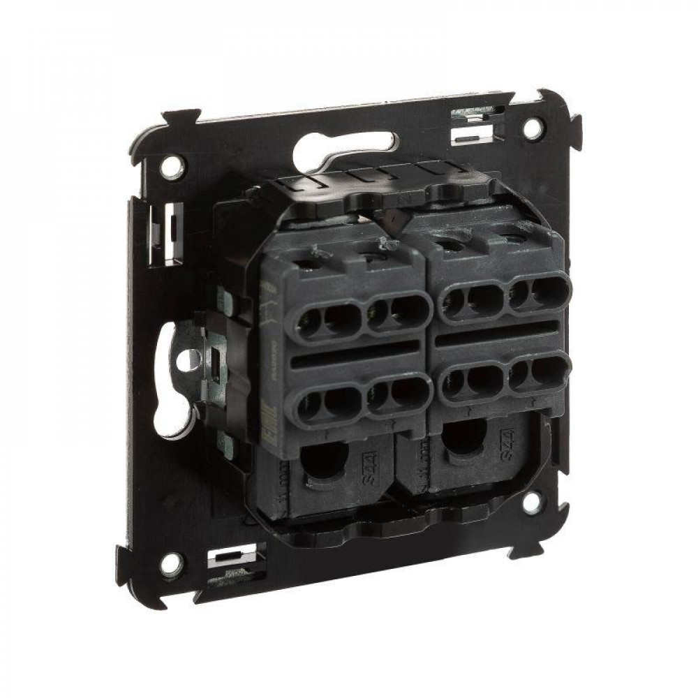 Инвертор двухклавишный. Назначение- для монтажа в подрозеточные коробки глубиной не менее 45 мм (код 59301). Используется для включения/выключения освещения из трех и более мест. Характеристики- 2 модуля, диаметр отверстий для ввода кабелей – 3 мм (по 2 отверстия на одну клемму), винтовые зажимы, шаблон для зачистки кабеля – 11 мм, номинальный ток – 16 A, номинальное напряжение – 230 В. Фиксация производится в подрозеточную коробку при помощи саморезов. Цвет- 'Черный матовый'.