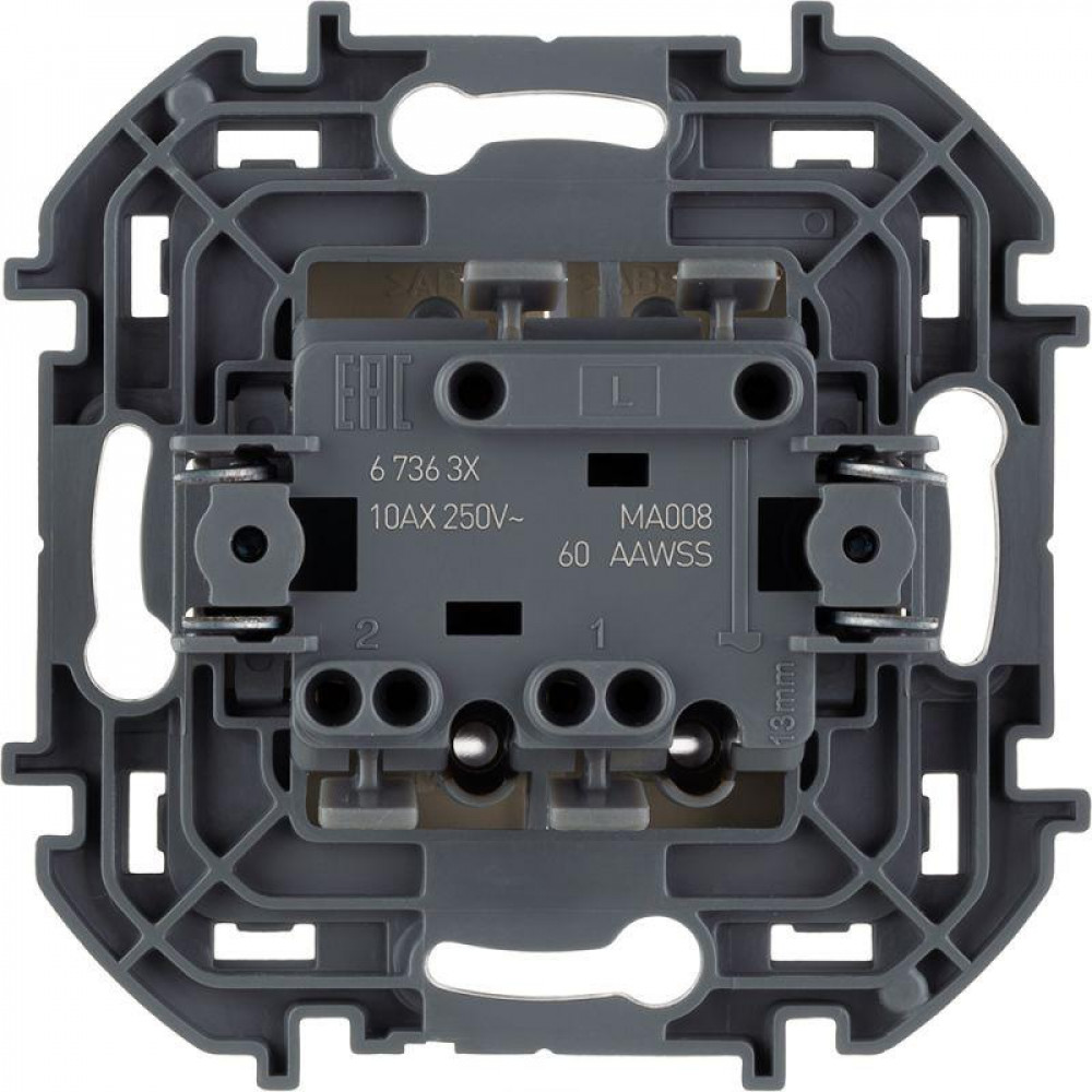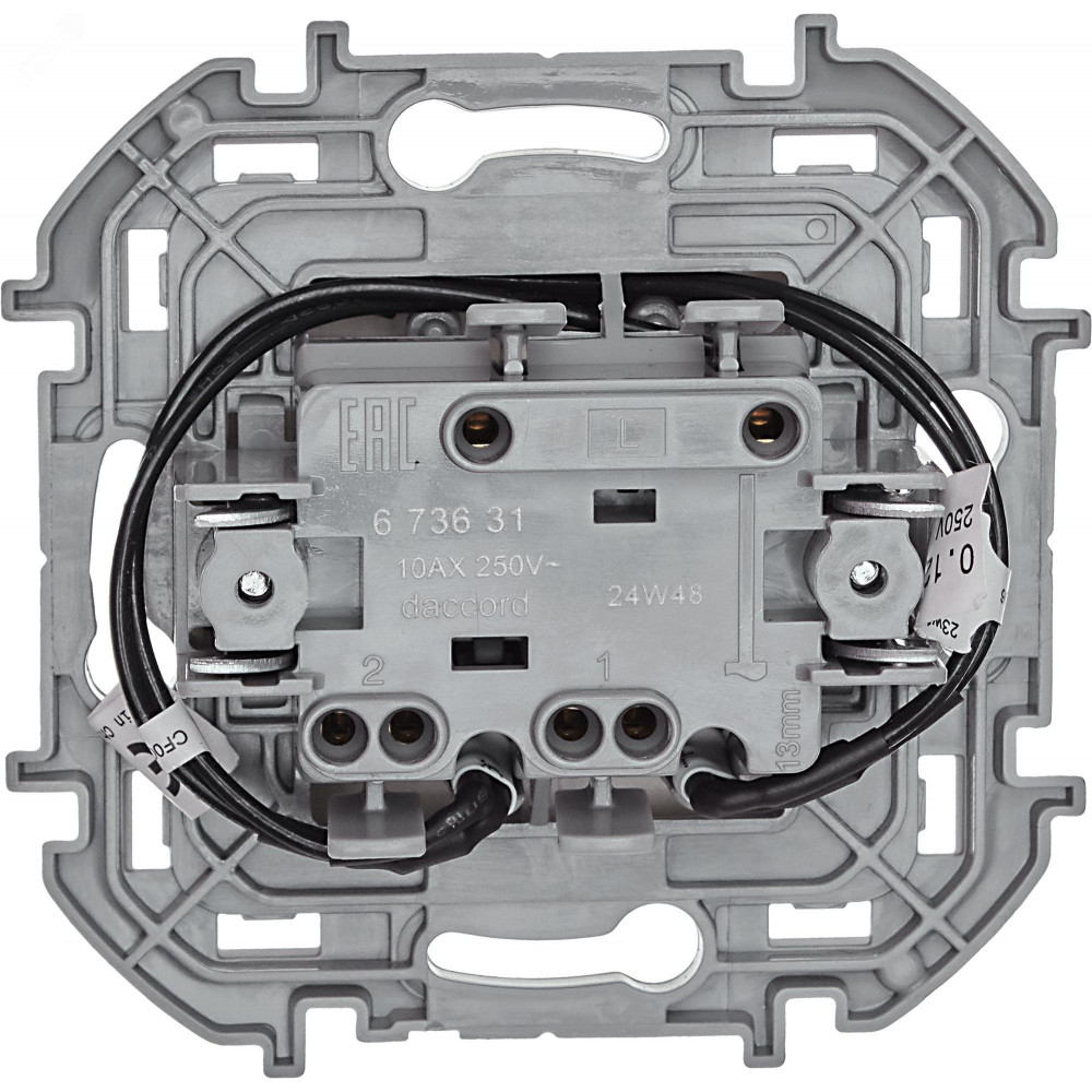 Выключатель 2-кл. Inspiria 10А IP20 250В 10AX с подсветкой/индикацией механизм сл. кость Leg 673631, Выключатель и переключатель скрытого монтажа