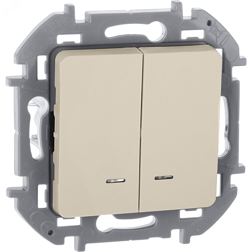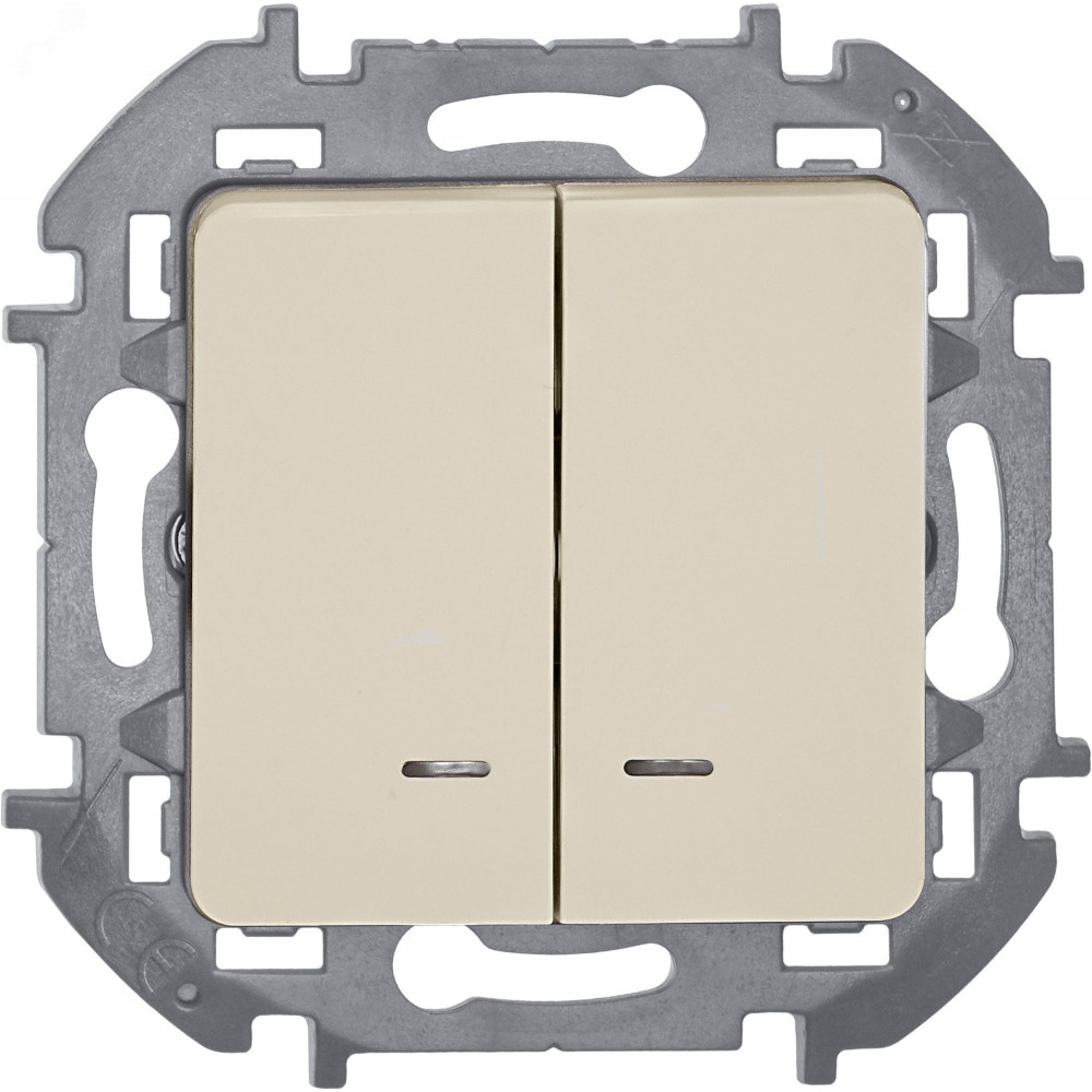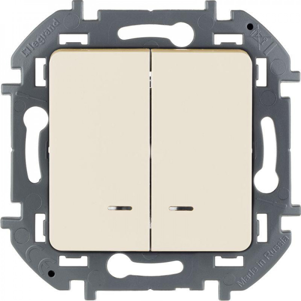 Выключатель двухклавишный с подсветкой/индикацией Legrand Inspiria для скрытого монтажа, цвет "Слоновая кость", номинальный ток 10 А, напряжение ~250В.