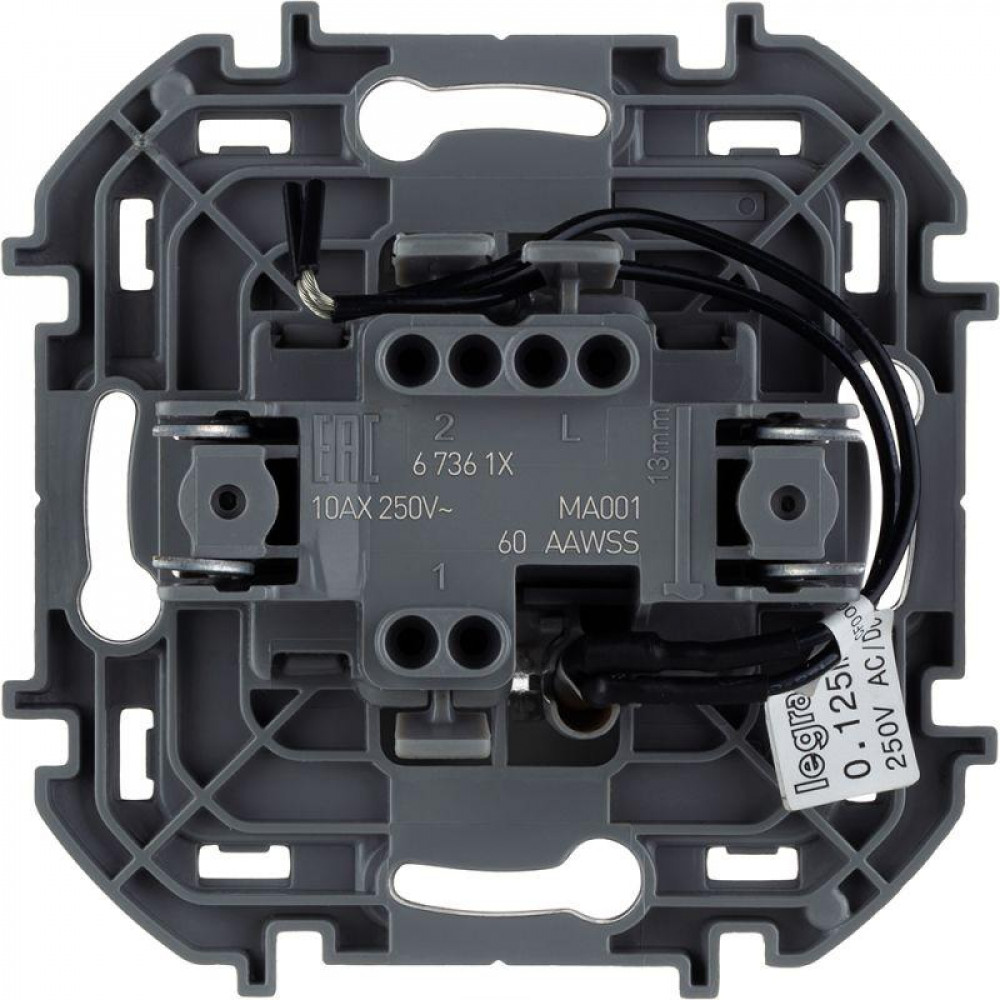Выключатель 1-кл. Inspiria 10А IP20 250В 10AX с подсветкой/индикацией механизм антрацит Leg 673613, Выключатель и переключатель скрытого монтажа