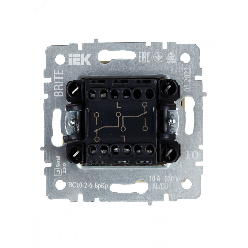 Выключатель проходной 2-кл. СП BRITE ВС10-2-6-БрКр 10А беж. BR-V22-0-10-K10, Выключатель и переключатель скрытого монтажа