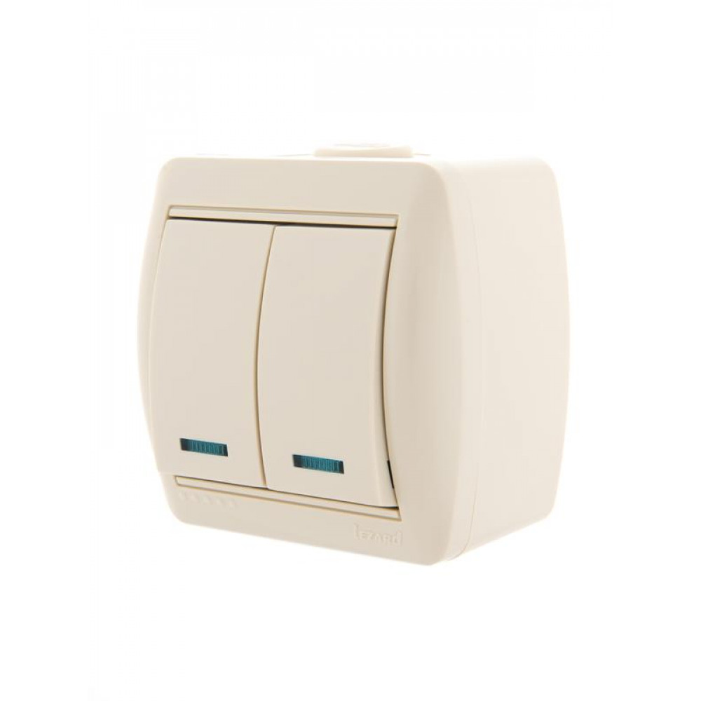 Выключатель 2-кл. ОП Nata 10А IP20 с подсветкой крем. 710-0300-112, Выключатель и переключатель открытого монтажа