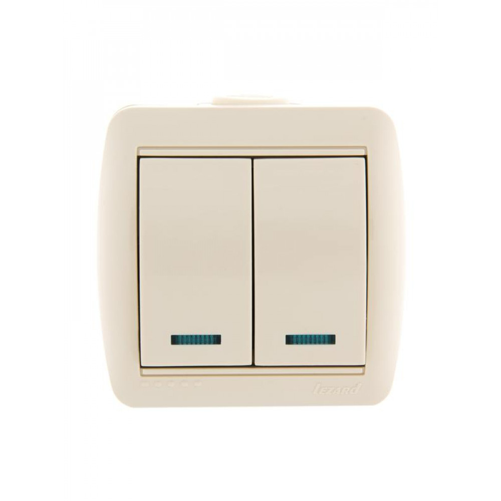 Описание Выключатель 2-кл. ОП Nata 10А IP20 с подсветкой крем. 710-0300-112