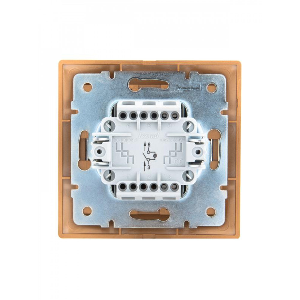 Описание Выключатель 1-кл. СП Mira 10А IP20 с подсветкой со вставкой зол. метал. 701-1313-111