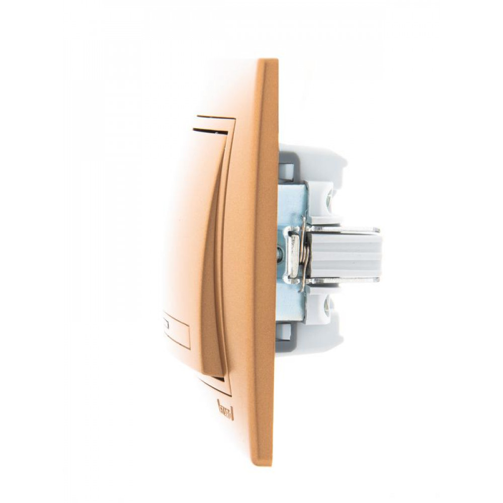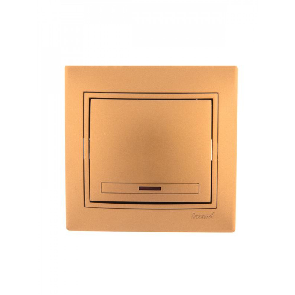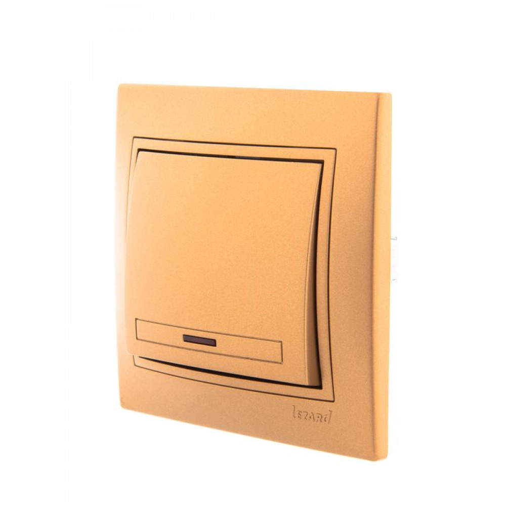 Выключатель 1-кл. СП Mira 10А IP20 с подсветкой со вставкой зол. метал. 701-1313-111, Выключатель и переключатель скрытого монтажа