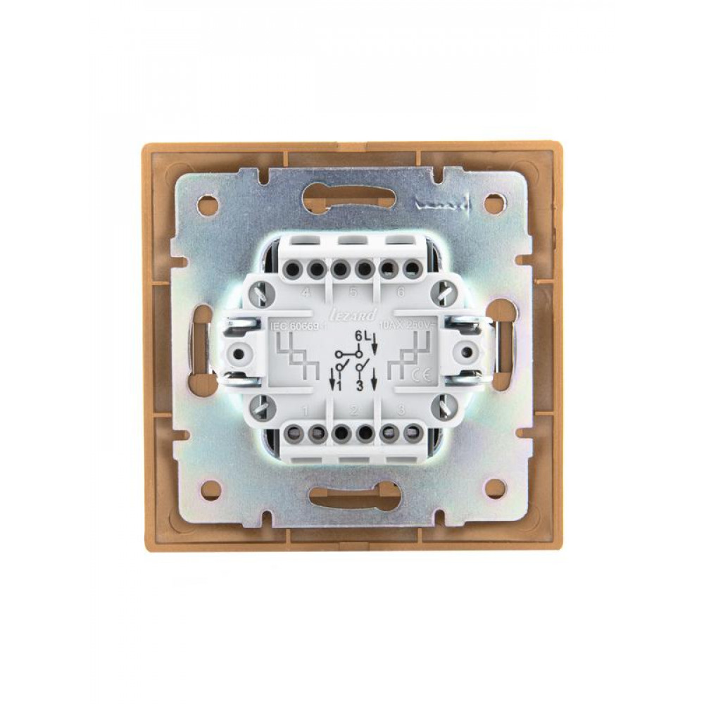Описание Выключатель 2-кл. СП Mira 10А IP20 со вставкой зол. метал. 701-1313-101