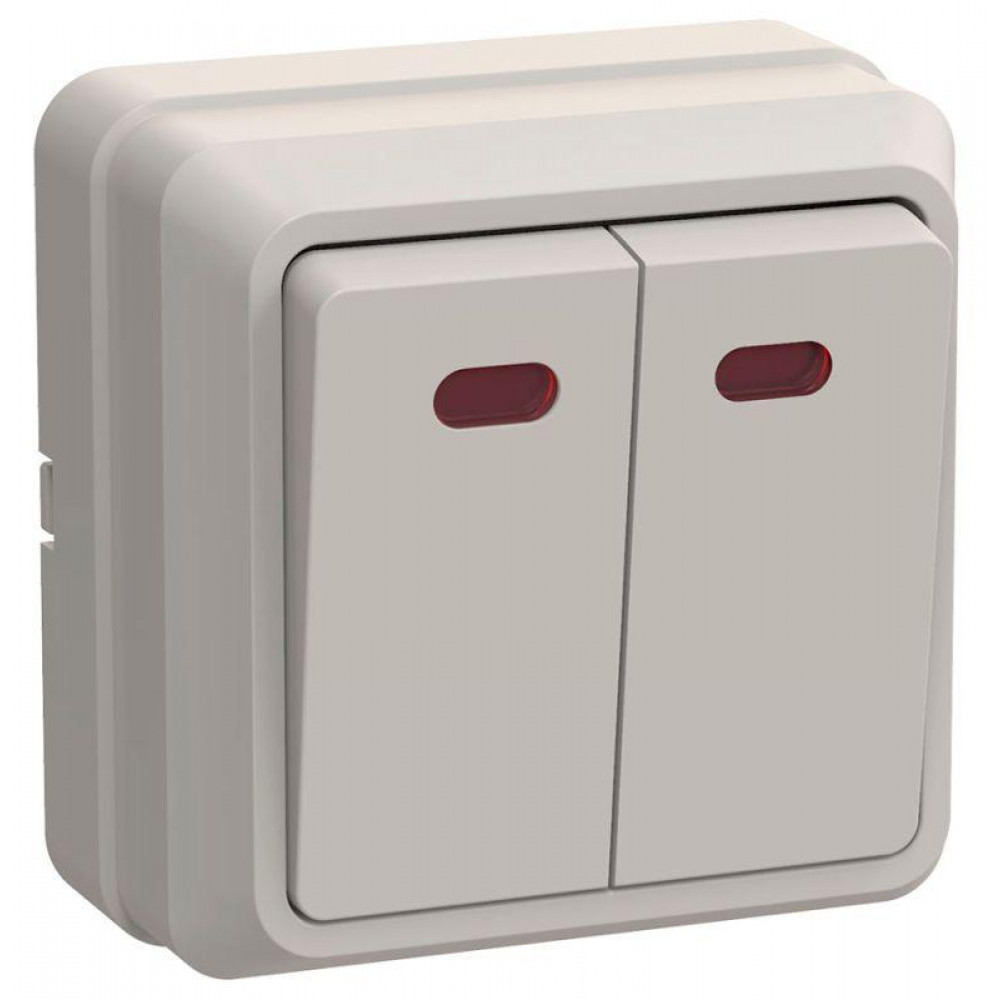 Выключатель 2-кл. ОП Октава 10А IP20 ВС20-2-1-ОКм с индикацией крем. EVO21-K33-10-DC, Выключатель и переключатель открытого монтажа