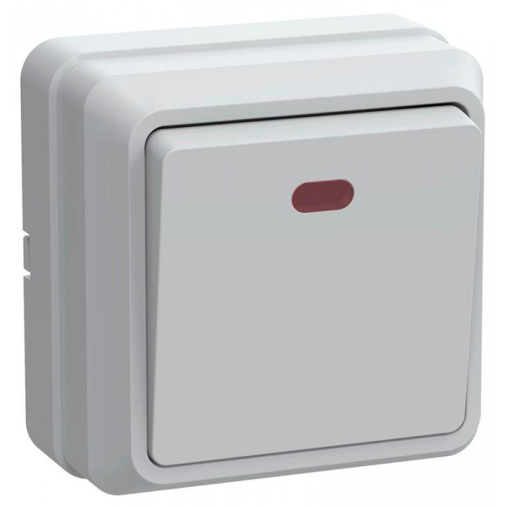 Выключатель 1-кл. ОП Октава 10А IP20 ВС20-1-1-ОБ с индикацией бел. EVO11-K01-10-DC, Выключатель и переключатель открытого монтажа