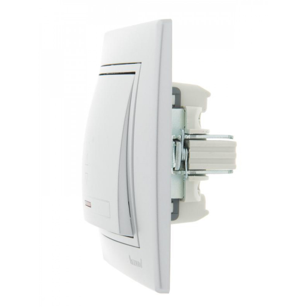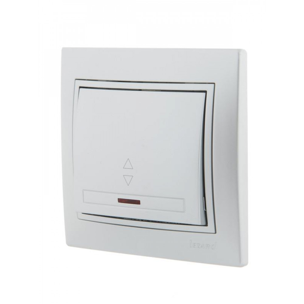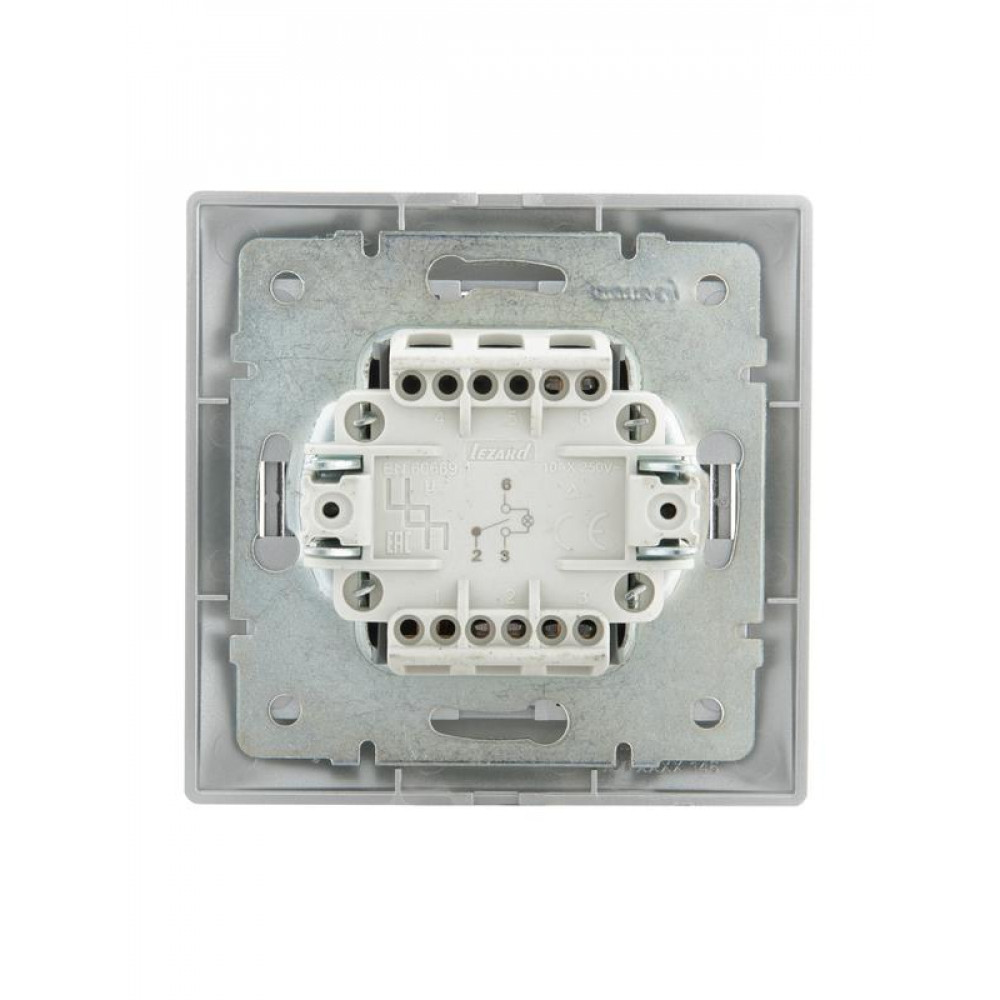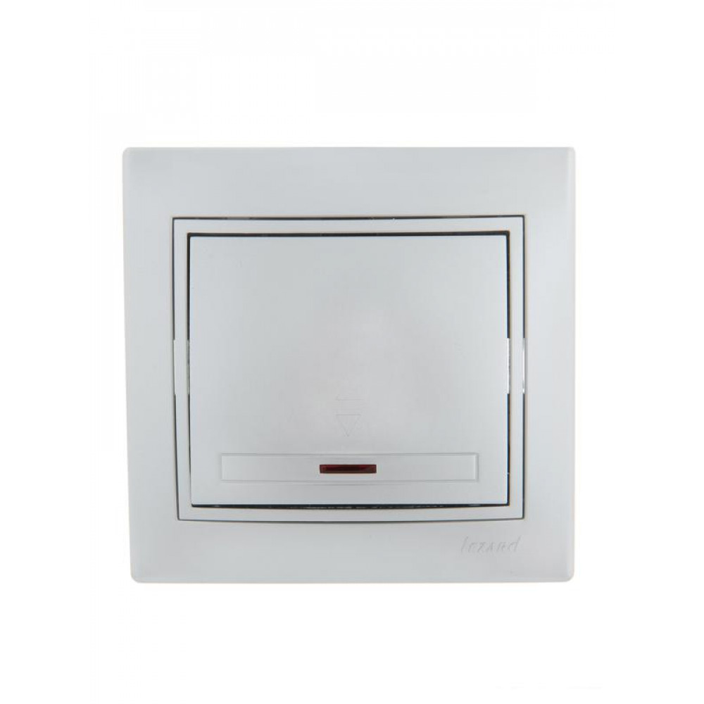 Переключатель проходной 1-кл. СП Mira 10А с подсветкой со вставкой сер. метал. 701-1010-114, Выключатель и переключатель скрытого монтажа