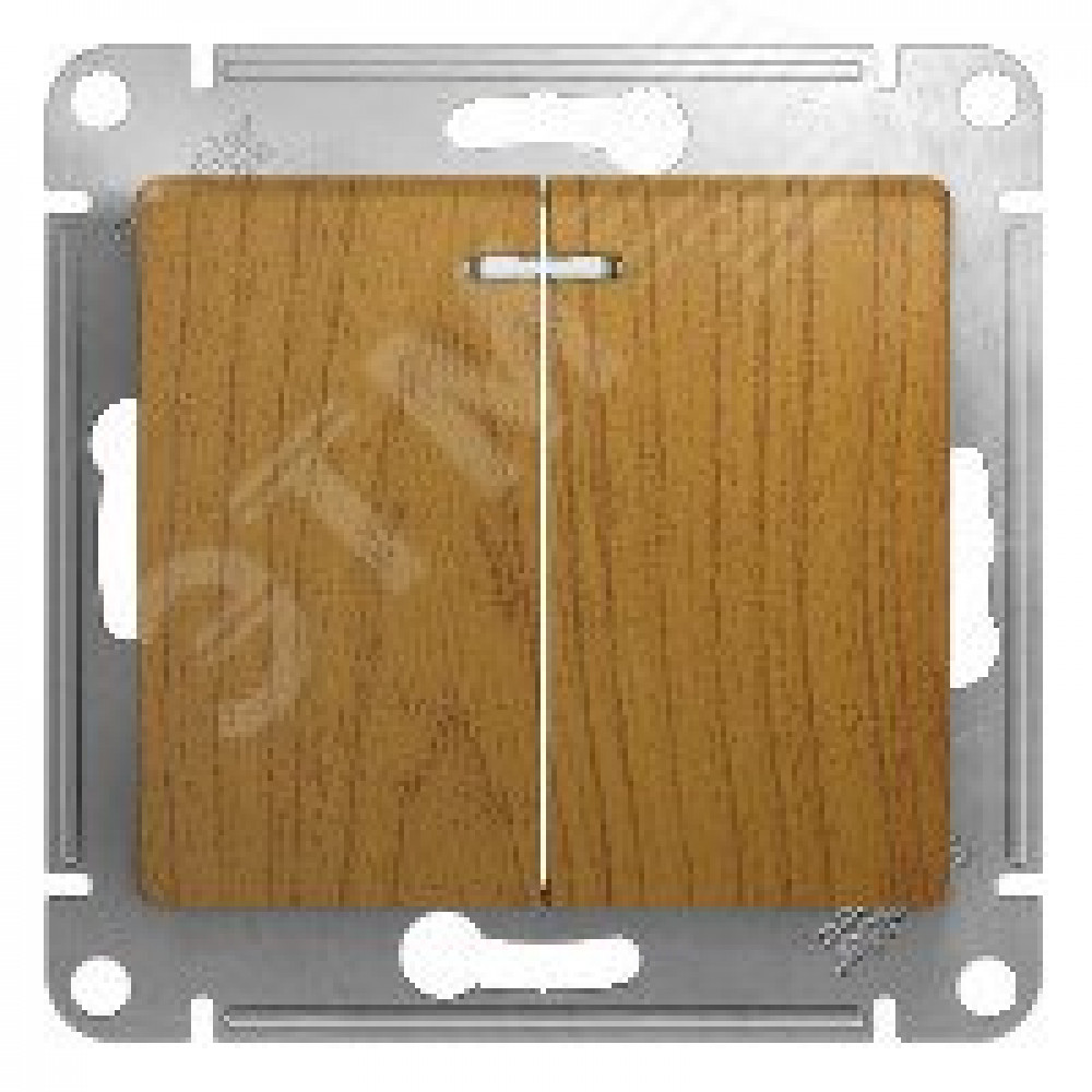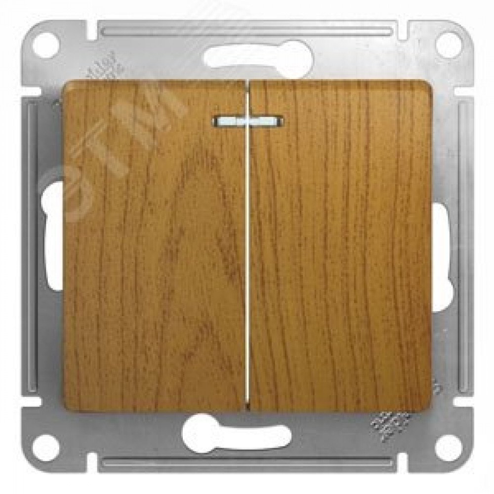 Механизм Glossa (цвет дерево дуб) выключателя 2-клавишного c подсветкой подходит для сетей 250 В, на ток 10 А.